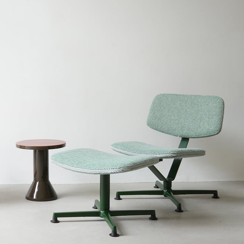 ARBAラウンジチェアは座面と背もたれの2成形合板、片持ち構造に曲げられた金属板で作られています。背骨のように絶妙な角度に曲げられたフレームによるカンチレバー特有のダイナミックなリアクションと、身体に合わせたカーブの背もたれによるリラックスした座り心地。ベースは快適な回転機能を有しています。オットマンと合わせることで、よりその真価を発揮します。実験的なプロトタイプの形状を忠実に保ちつつ、工業製品としての高い精度も兼ね備え、熟慮を重ねて精密に作られた革新的なラウンジチェアです。