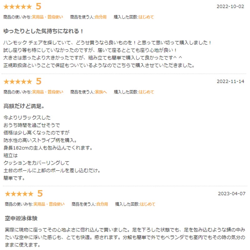 “究極の座り心地”のハンモックチェア