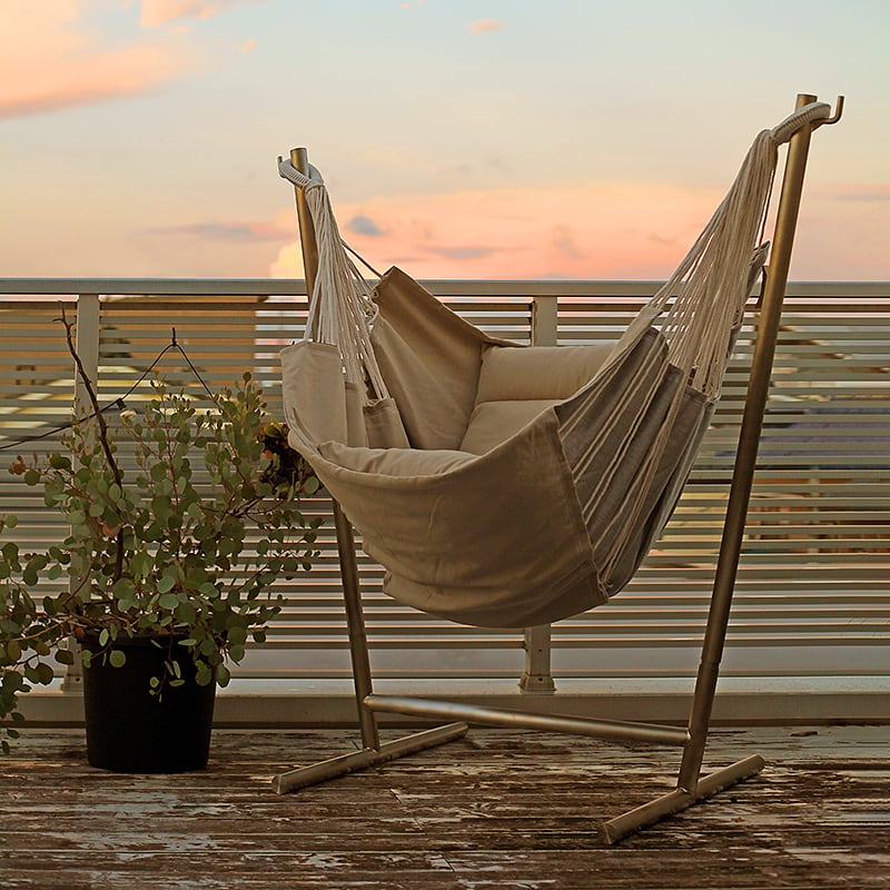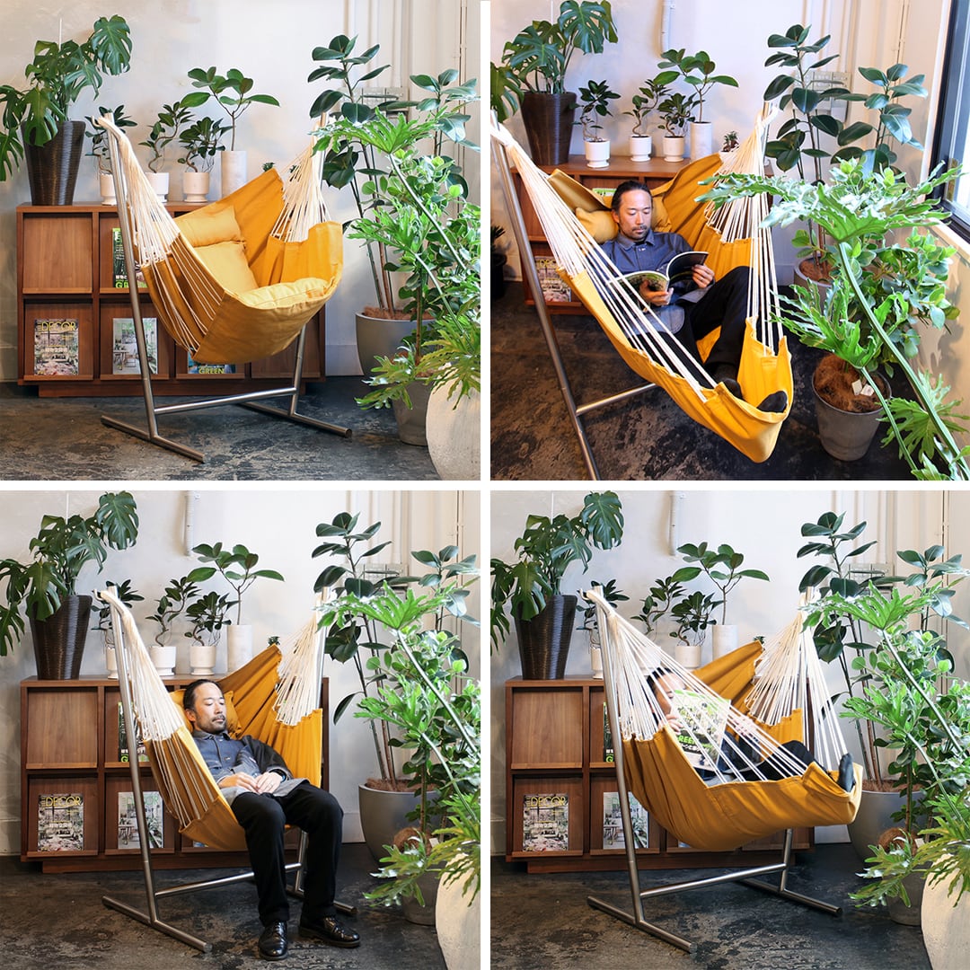 【ハンモックの浮遊感で極上のリラックス。スペイン生まれの自立式2wayハンモック!】