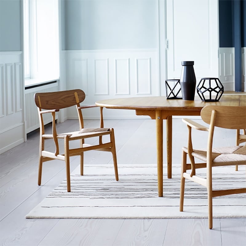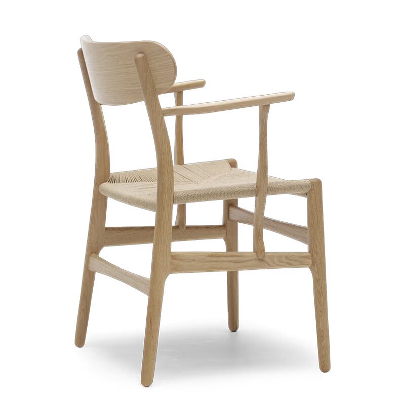 オーガニックなフォルム、印象的な背、白木素材、ペーパーコード張りの座と、CH26はラウンジチェア CH22を彷彿させるダイニングチェアとなっています。ダイニングチェアとして、デスク用の椅子として、長い時間使用するシーンに適した椅子と言えます。