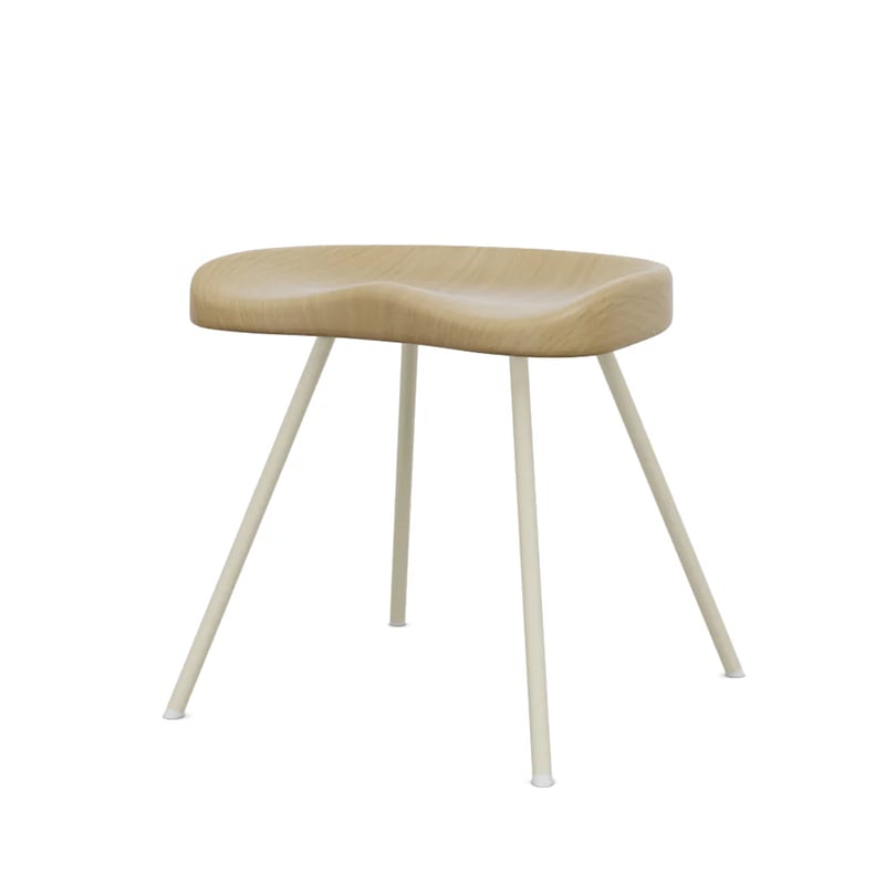 ジャン・プルーヴェによってデザインされたスツール「タブレ N°307」は、中心部に窪みを持たせた、まるでトラクターのサドルのような座面が特徴です。同時期に彼が設計した大学の講義室に並ぶ座席を彷彿とさせます。