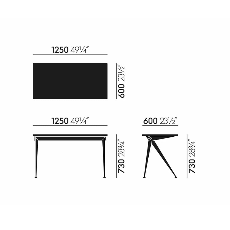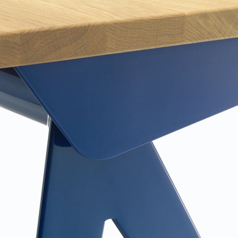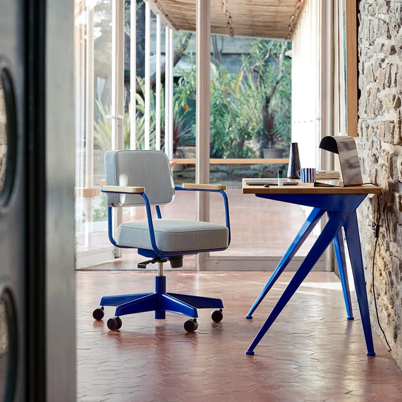 ジャン・プルーヴェによってデザインされた「コンパス ディレクション」は、シャープでエレガントに広がるスチール製の脚がコンパス(フランス語で‘le compas’ )の針を端的に表現しています。その合理的な構造は、デザイナーであり、エンジニアでもあるプルーヴェならではの特徴と言えます。オイル仕上げのソリッドウッドが用いられた天板と、スチール製の脚とのダイナミックなコントラストがホームオフィスの空間を魅力的に彩ります。