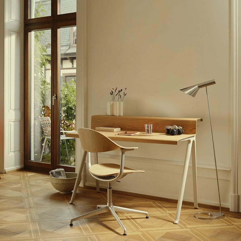 フランスのデザイナーでありアーティストでもあるロナン・ブルレックがデザインしたデスク「クーリエ」 は、形態と構造に対する彼の感覚と技術的な専門知識の集大成です。木材とアルミニウム、それぞれ高品質な素材を見事に組み合わせたデザインは、個性的でありながらもあらゆる環境や用途に馴染むよう控えめで穏やかです。エレガントかつコンパクトで、多用途に使えるこのデスクは、自宅やオフィスでの作業や仕事に最適です。