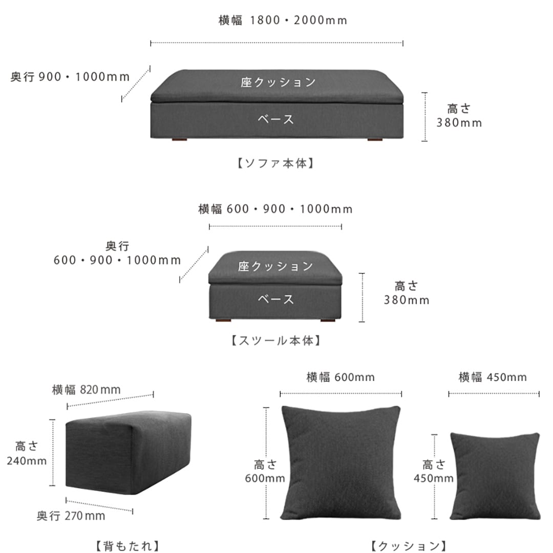 リアルスタイルオリジナルの国産ファブリックソファです。ゆったりとした奥行きとワイドは解放感があり、家族それぞれがソファで寛ぎ集う憩の場となります。最高級のベッドがそのままスタイリッシュなソファになったかのようです。耐久性とクッション性に優れたコイルスプリングの技術を駆使したソファベース。背もたれになるクッションは1つ約5kgと重みを持たせてありますが、自由に動かす事ができる置き型。背もたれ、クッションを自由に組み合わせて、あらゆるシーンに合わせることができます。またスツールとあわせてL字の形にしたり、空間、用途にあわせてレイアウトいただけけます。