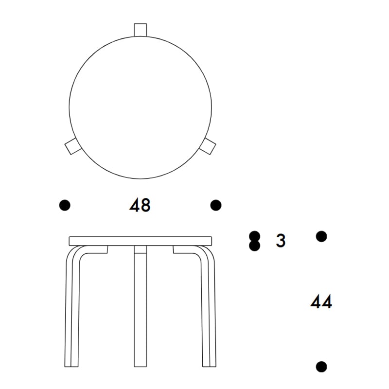 アルヴァ・アアルトにより1933年にデザインされた「スツール 60」は、座面と三本の脚という最小限の要素で形作られています。円形の座面の裏に直接脚を取り付けるとてもシンプルな構造で、椅子としてだけでなく、ローテーブルや、インテリアアクセサリーを飾る台として、さまざまな使い方ができます。タワーのように積み重ねることもできるため、収納場所にも困りません。フィンランドのトゥルクにあるアルテックの工場、A-ファクトリーで、42もの製造工程を経て生み出される「スツール 60」は、たくさんの色と仕上げのバリエーションを揃えています。フィンランドの国内外へと出荷された「スツール 60」と四本脚の「スツール E60」は、これまでに数百万脚にのぼり、時を越え、国や文化を越え、世界中で愛され続けています。