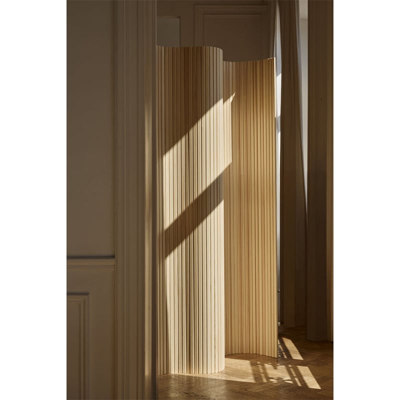 アルヴァ・アアルトによる「パーテーション」が、現代の多様なライフスタイルに合わせて、高さ100cm・130cm・180cmの新たなバリエーションで復刻されました。従来の150cmモデルとともに、用途や空間に応じて曲線や高さを選べる柔軟なデザインが特長です。巻いてコンパクトに収納でき、設置や移動も簡単でありながら高い安定性を備えています。素材にはアアルト家具で一般的な白樺ではなく、フィンランド全土に広く自生するパイン材を使用。美しい木目が印象的で、使い込むほどに味わいを増し、豊かな経年変化(パティナ)を楽しむことができます。