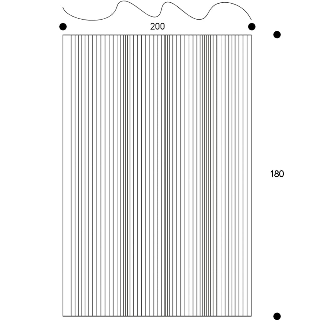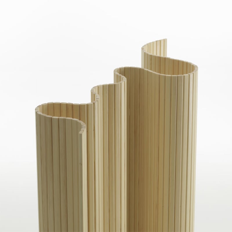 細いパイン材をすだれ状に垂直に配した「パーテーション 100」。部屋の間仕切りとして使用できるだけでなく、端から巻いて収納することもでき、持ち運びも簡単です。