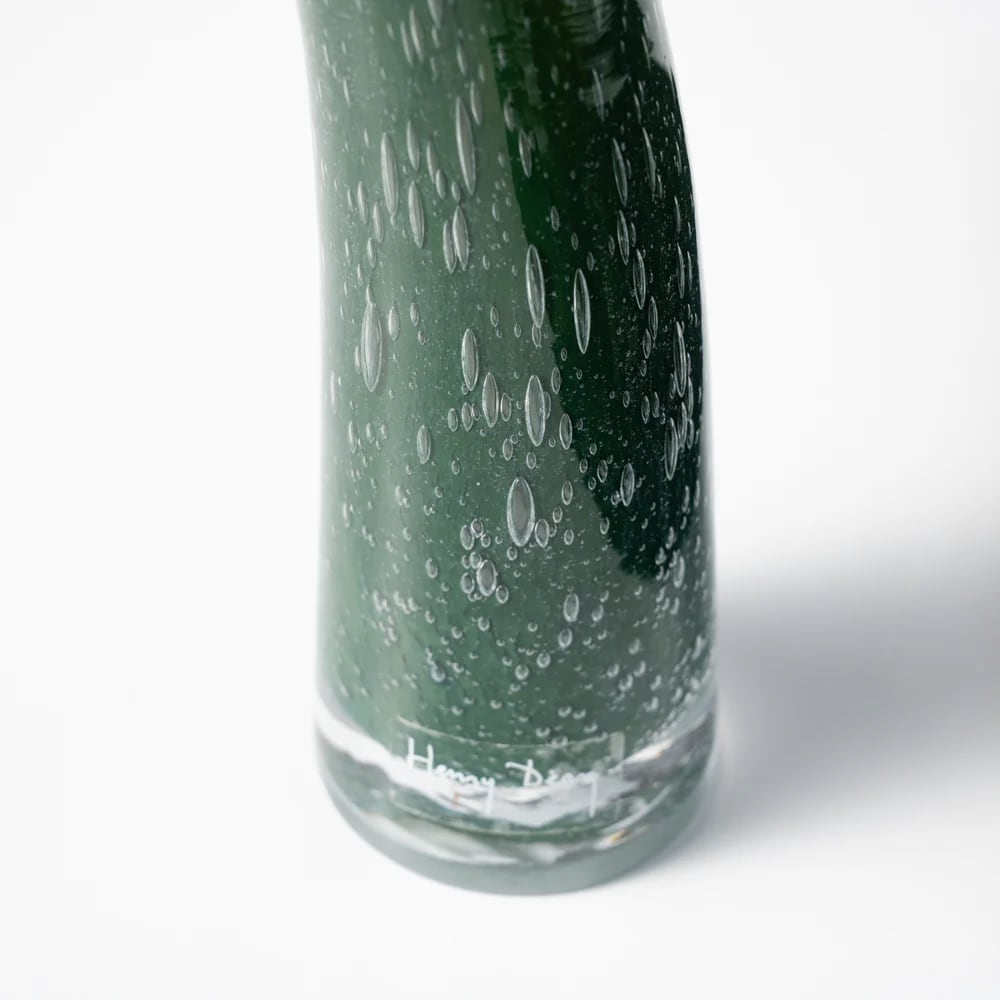 1972年にヘンリー・ディーンが創設したベルギーのフラワーベースブランド。昔ながらの手吹きガラスの手法によって生まれるやわらかなフォルムと揺らぎ、自然や日常のワンシーンから想起する洗練された色をまとったフラワーベースは、アートピースのような佇まいながら、つい触れたくなるような温かみをももっています。主な原料はリサイクルガラス。リサイクルガラスは扱いがむずかしい一方で、発色や気泡など思いがけない表情を生み出します。創業から50年以上にわたり、リサイクルガラスの可能性を追求し続けているのです。植物を引き立てるHenry Deanのフラワーベースは、日本をはじめ世界中のフローリストから愛されています。