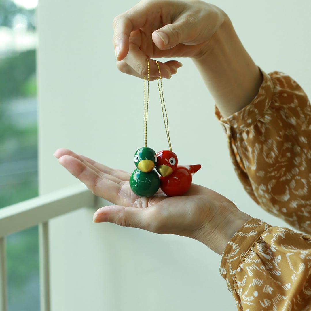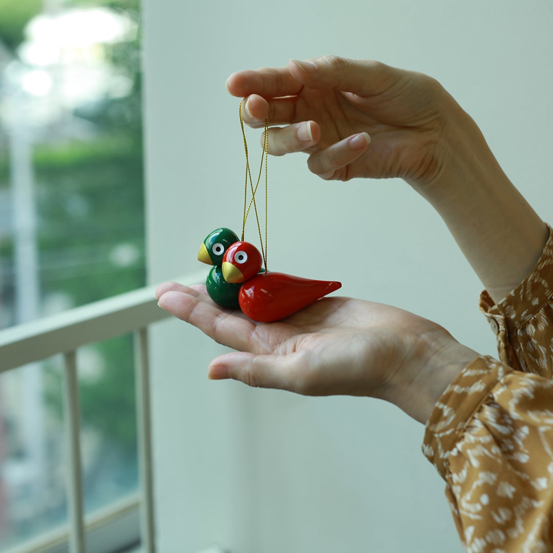 デンマークデザインの名作「ソングバード」から、ホリデーシーズンを彩る特別なエディションが登場しました。赤と緑のクラシックなクリスマスカラーに、ゴールドのくちばしと吊り紐がアクセントとなった、華やかで愛らしいオーナメントセットです。高さ5cmの小ぶりなサイズは、クリスマスツリーのトップや、花瓶に飾った枝、窓辺のデコレーションなど、さまざまなシーンにぴったり。デンマークらしい洗練されたデザインが、空間に温もりと喜びをもたらします。