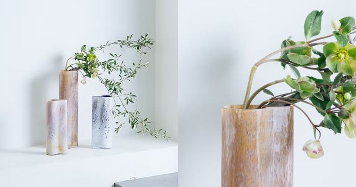 1972年にヘンリー・ディーンが創設したベルギーのフラワーベースブランド。昔ながらの手吹きガラスの手法によって生まれるやわらかなフォルムと揺らぎ、自然や日常のワンシーンから想起する洗練された色をまとったフラワーベースは、アートピースのような佇まいながら、つい触れたくなるような温かみをももっています。主な原料はリサイクルガラス。リサイクルガラスは扱いがむずかしい一方で、発色や気泡など思いがけない表情を生み出します。創業から50年以上にわたり、リサイクルガラスの可能性を追求し続けているのです。植物を引き立てるHenry Deanのフラワーベースは、日本をはじめ世界中のフローリストから愛されています。