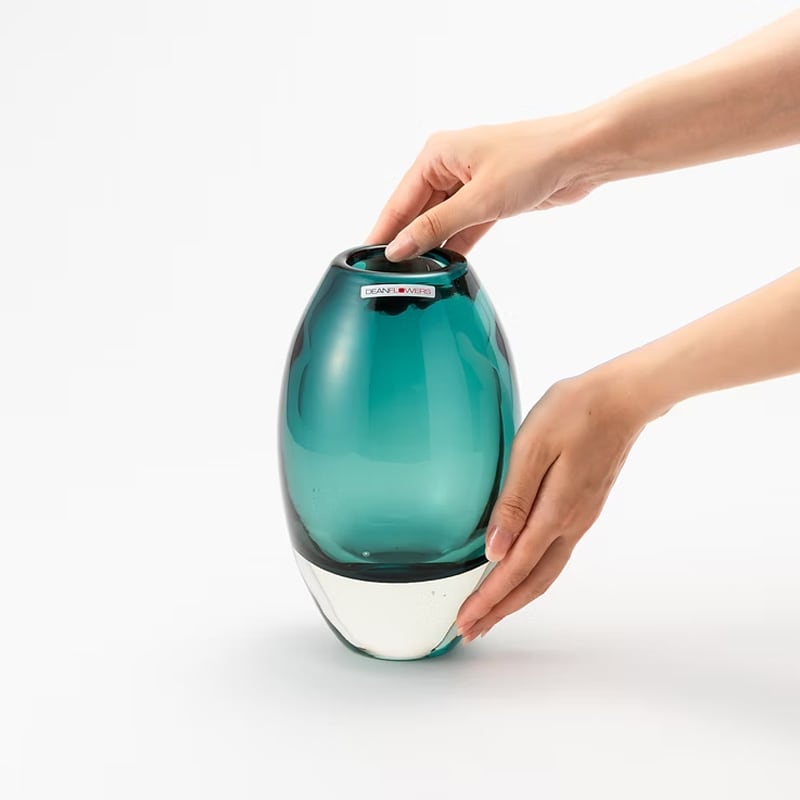 1972年にヘンリー・ディーンが創設したベルギーのフラワーベースブランド。昔ながらの手吹きガラスの手法によって生まれるやわらかなフォルムと揺らぎ、自然や日常のワンシーンから想起する洗練された色をまとったフラワーベースは、アートピースのような佇まいながら、つい触れたくなるような温かみをももっています。主な原料はリサイクルガラス。リサイクルガラスは扱いがむずかしい一方で、発色や気泡など思いがけない表情を生み出します。創業から50年以上にわたり、リサイクルガラスの可能性を追求し続けているのです。植物を引き立てるHenry Deanのフラワーベースは、日本をはじめ世界中のフローリストから愛されています。