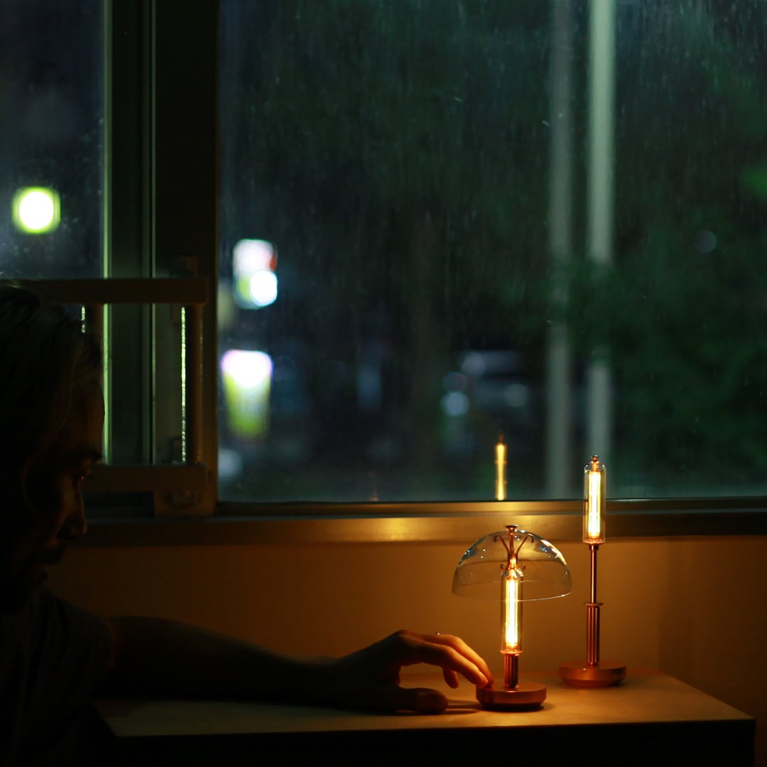 共通して受け継がれた光源は、直接見ても眩しくなく、それでいてまるで温度を感じるような温かな光を灯します。自然の中にある生命感をモチーフにした前作に対し、Barcarolle は、人の暮らしや文化が歴史の中で創り上げてきた要素からインスピレーションを受けています。古くから残るヨーロッパの美しい街灯、歴史的な教会や施設といった建築、そこにある階段や柱のディテール。これらが持つある種の装飾性を再解釈することで、時代や時間軸が溶け合い、クラシックとモダンが一つに調和したかのようなポータブルランプの姿が生まれました。