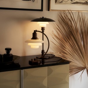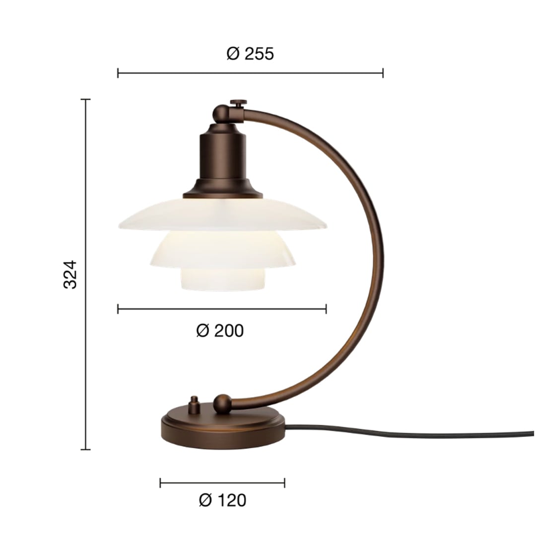 美しいラッカー塗装ダークブラウンエージド加工真鍮仕上げのPH 2/2 Luna Aged Brass Opalテーブルランプは、1930年代のオリジナルのPHランプを想起させます。エレガントなオパールホワイトの吹きガラスシェードと組み合わせることで、ベッドサイドテーブルや窓辺など、あらゆるシーンにクラシックなタッチを添えます。
