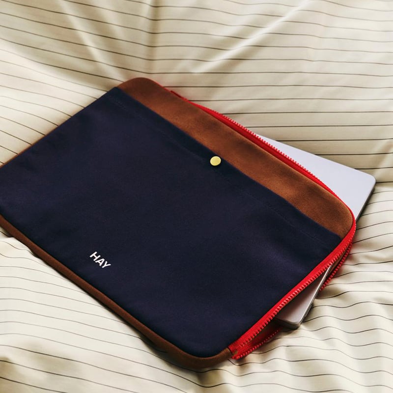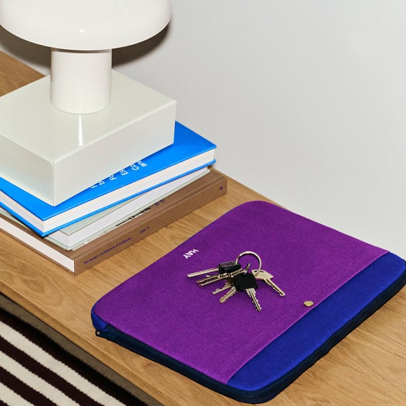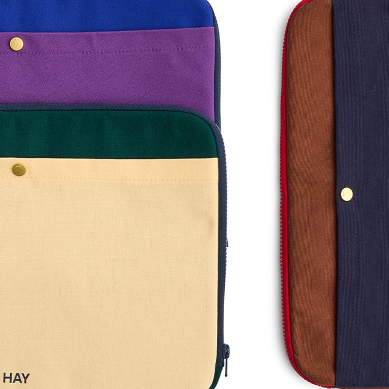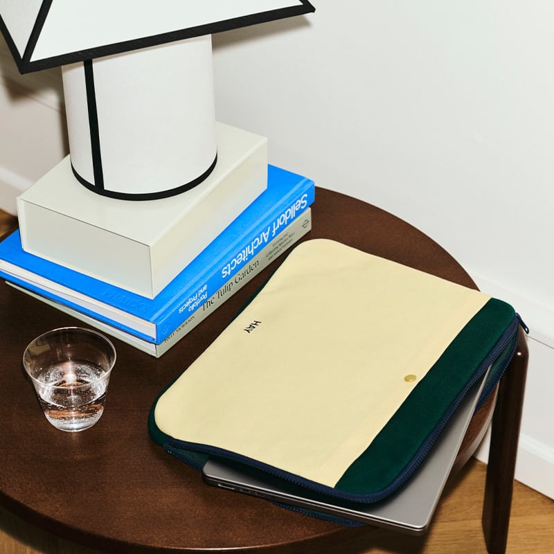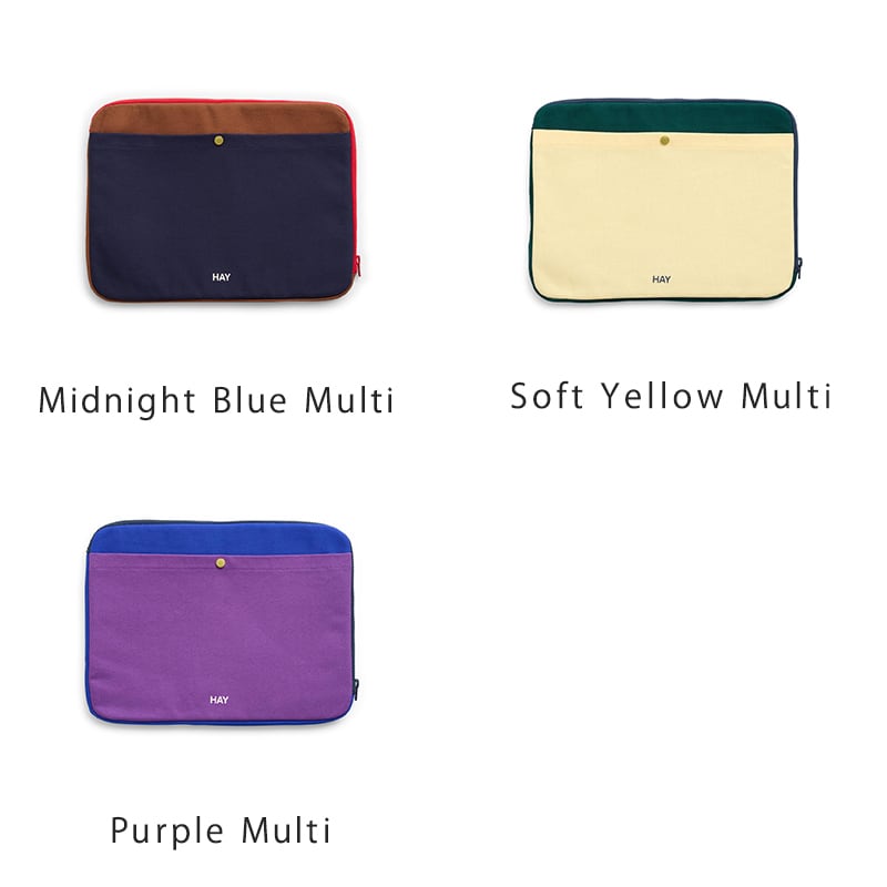 ノートパソコンを保護するためにデザインされたMulti Laptop Coverは、オーガニックコットン製で、カラフルなツートーンデザインが特徴です。留め具付きの外側ポケットを備え、イヤホン等を一緒に収納できます。また、ジッパーが広く開くのでパソコンの出し入れも簡単です。13インチと14インチのノートパソコンサイズに対応しています。
