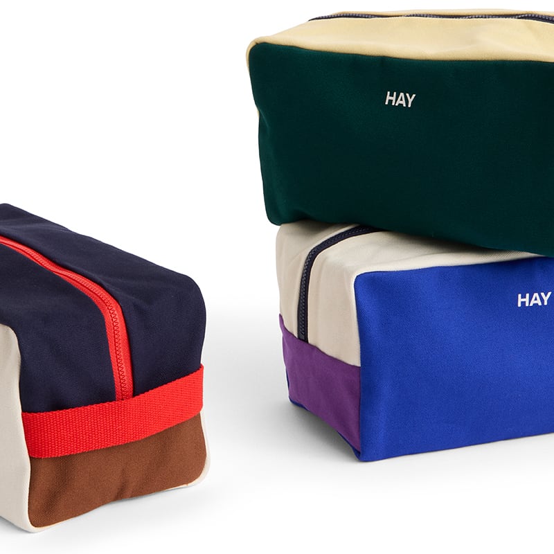 HAYのMulti Wash Bagは、コスメやバスルームの必需品を収納できる、カラフルで実用的なポーチです。ジッパー開閉式で、内側にはポケットがあり、外側には吊り下げに便利なストラップが付いています。丈夫で耐久性のあるオーガニックコットン製で、十分な収納力を備えています。