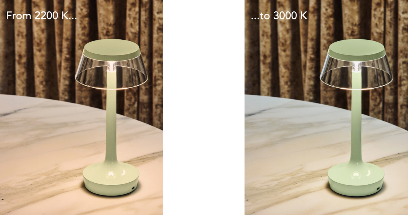 Bon Jour Unpluggedは、新たな機能を搭載しました。調色可能な異なる色温度を提供し、センサーを長押しすることで、2200K – 2700K – 3000Kの3つの色温度に切り替えることができます。