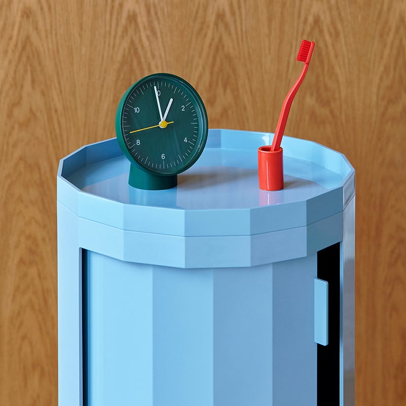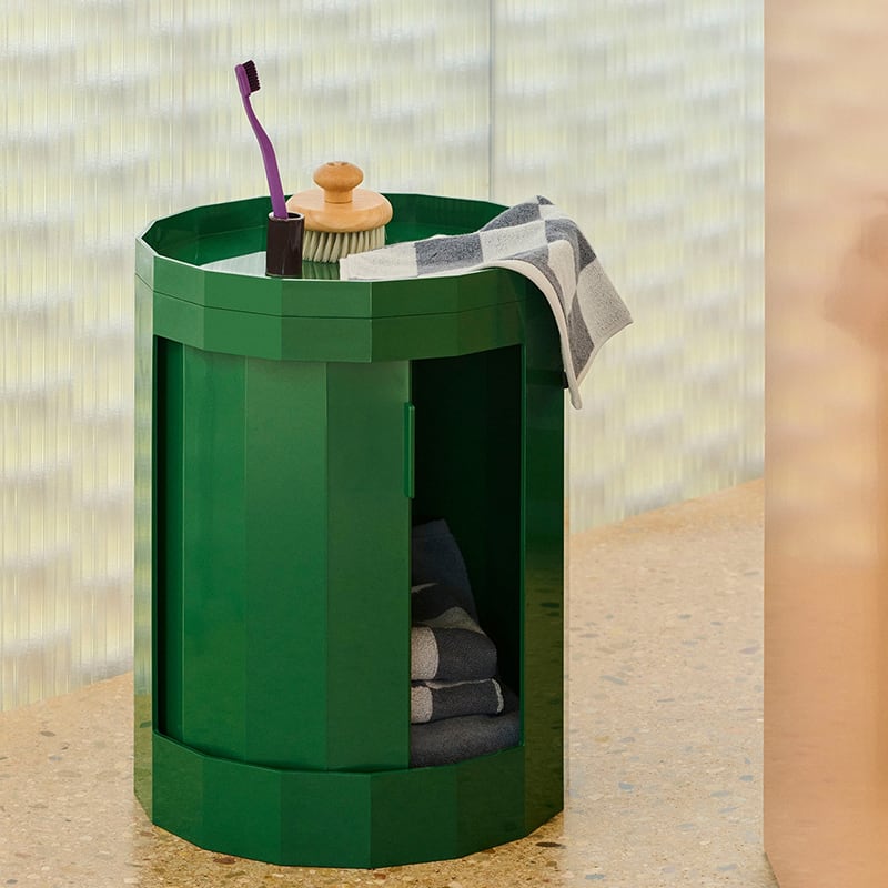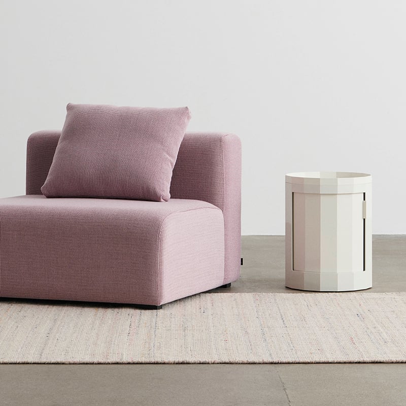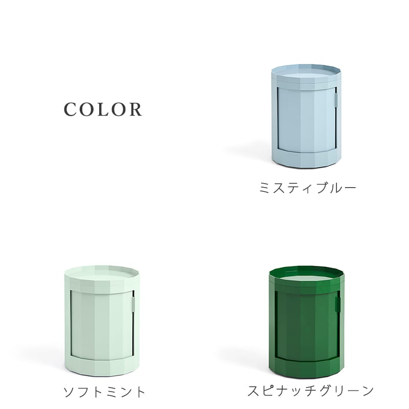 名前の由来である多面体(ファセット)の表面が、ミニマルなデザインに洗練されたアクセントとなり、また、FACETは視覚的な魅力と高い機能性を兼ね備えています。回転式ドアと取り外し可能なキャスターを備え、置く場所に合わせた使い方が可能です。