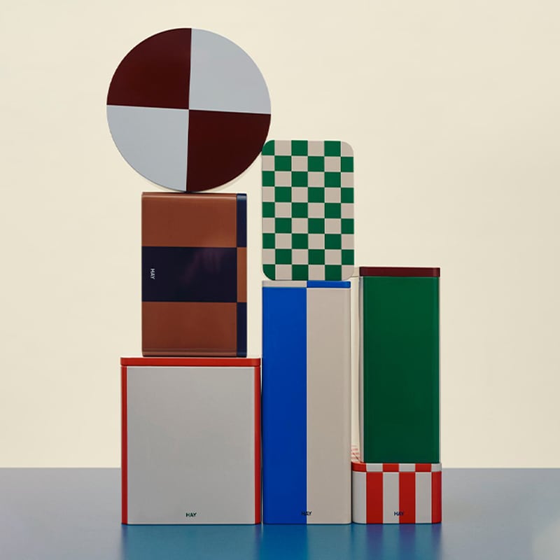 カラフルなチェック柄と光沢のある仕上げが特徴のTIN CONTAINERは、機能性と装飾性を併せ持つ収納缶です。フタと本体がぴったりと合わさるため、継ぎ目なく滑らかな見た目であるだけでなく、密閉性が高く乾燥食品の保存にも適しています。さまざまなサイズ、形、デザインを取り揃えており、お部屋の棚やテーブルの上などに飾って、さまざまなアイテムを整理整頓していただけます。