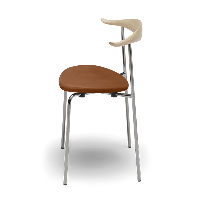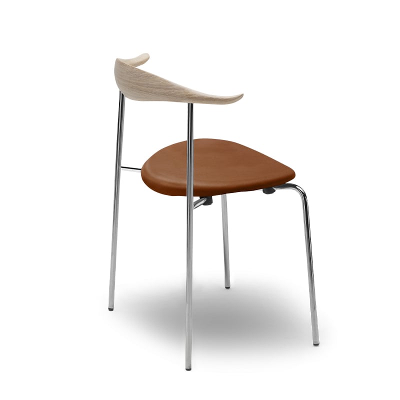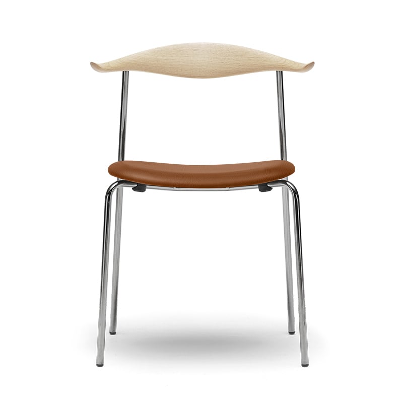 木製の家具で知られるハンス J. ウェグナーですが、常に新しい素材に挑戦し、素材の持つ可能性を追求していました。その一つがCH88Tです。2014年、ウェグナーの生誕100年を記念してカール・ハンセン&サンはCH88を復刻。時を経て初めて市場に発表されました。多目的に使用できる柔軟な機能性とシンプルでエレガントなフォルム。スタッキングも可能です。自然素材である木材と工業製品であるスチールを美しく融合したCH88。ミニマルなフォルムながら、独特の温かみ持つ、ウェグナーならではのセンスが光る椅子となっています。緩やかな曲線を描く楕円形の木製の座面や曲木材を用いた背もたれ。それとは対照的な直線的なスチール製のフレームで支えられています。また、背もたれの先端は自然に肘を置くことを考慮した、機能的な形状となっています。