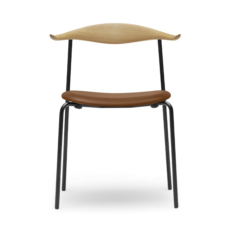 CH88Pの座面に張られた皮革が使用感をさらにアップ。フレームはスチール粉体塗装。また、座面が木製の板座のCH88Tも用意されています。
