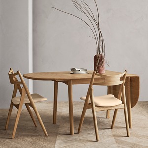 ダイニングテーブル CH002は、ハンス J. ウェグナーが1982年に発表したテーブルシリーズの一つ。都会の住空間に求めらるニーズにウェグナーが応えたテーブルです。両端の伸長板で限られた空間をフレキシブルに使用することが可能です。