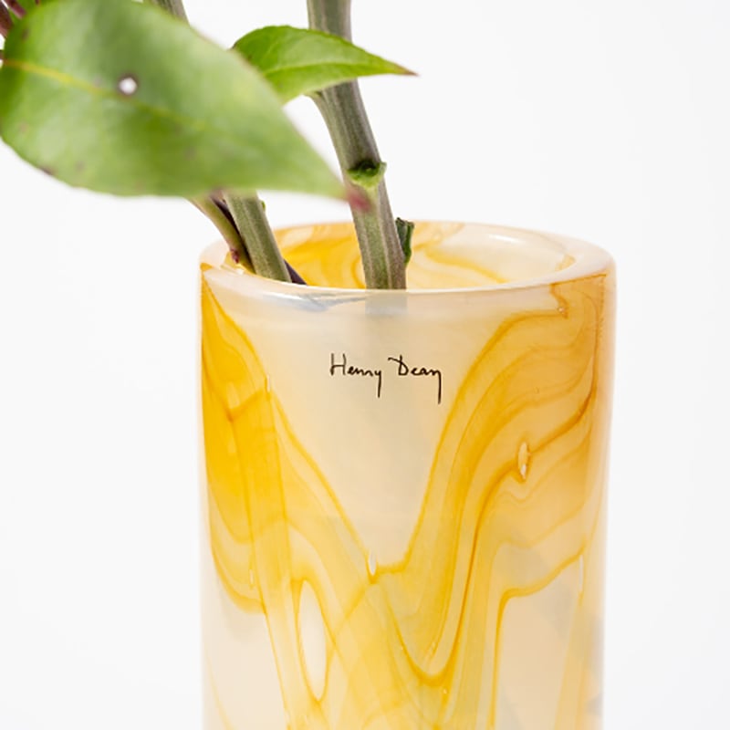 1972年にヘンリー・ディーンが創設したベルギーのフラワーベースブランド。昔ながらの手吹きガラスの手法によって生まれるやわらかなフォルムと揺らぎ、自然や日常のワンシーンから想起する洗練された色をまとったフラワーベースは、アートピースのような佇まいながら、つい触れたくなるような温かみをももっています。主な原料はリサイクルガラス。リサイクルガラスは扱いがむずかしい一方で、発色や気泡など思いがけない表情を生み出します。創業から50年以上にわたり、リサイクルガラスの可能性を追求し続けているのです。植物を引き立てるHenry Deanのフラワーベースは、日本をはじめ世界中のフローリストから愛されています。