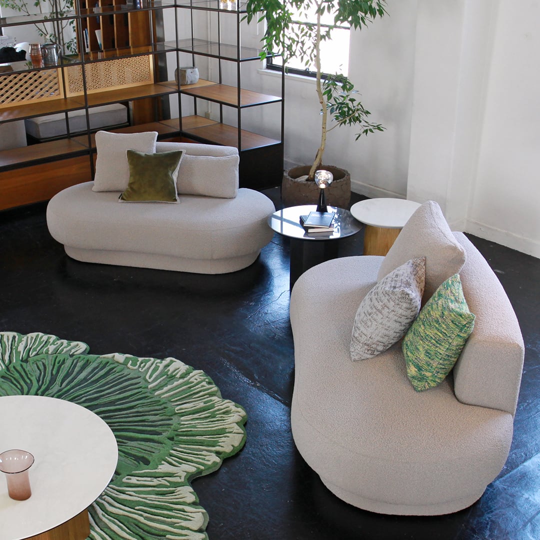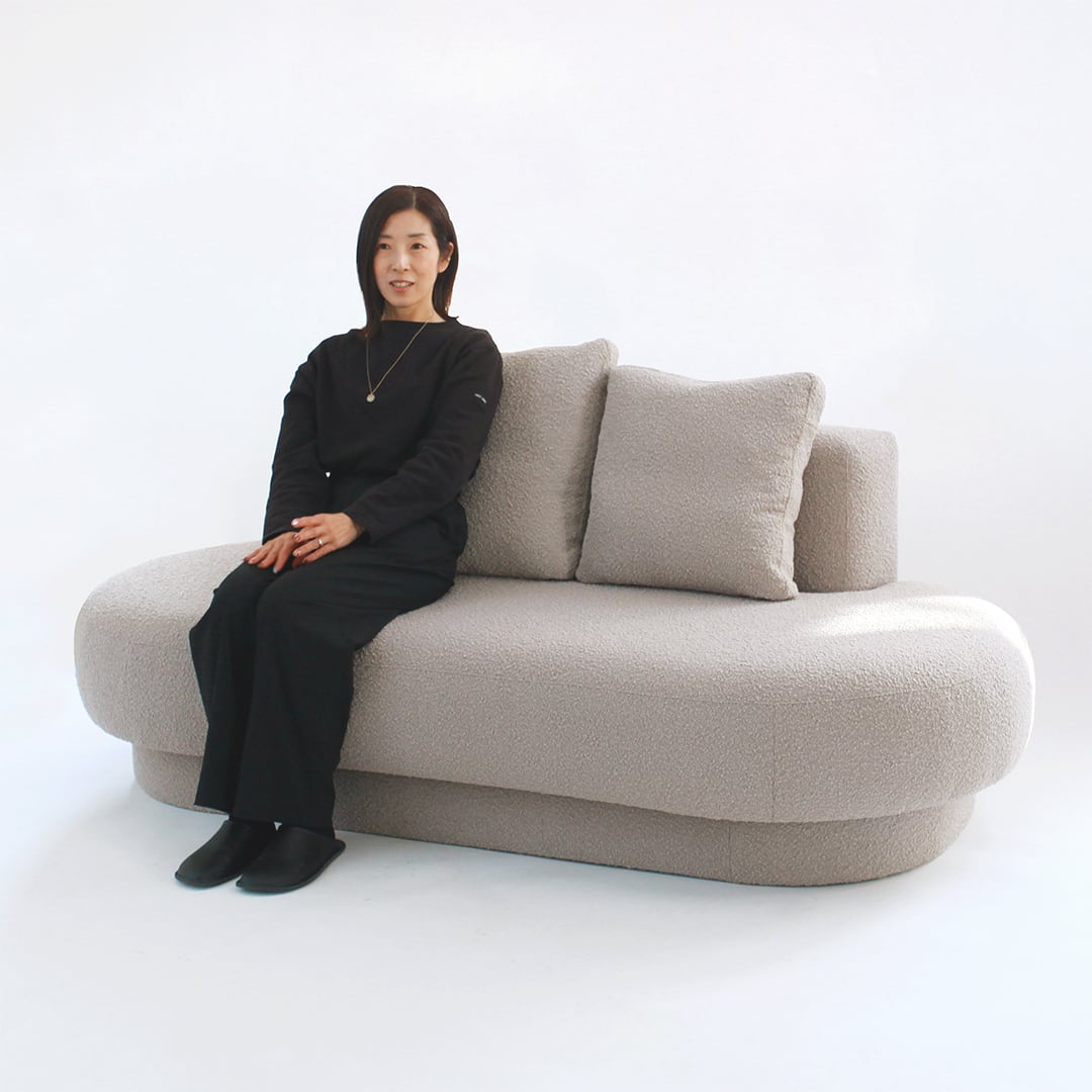 リアルスタイルオリジナルの国産ファブリックソファです。イタリアのインテリアブランドにおいても注目されている、トレンド感満載のソファ。全体的に丸みを帯びた角のないフォルムに、その名の通り、心がやわらぎます。