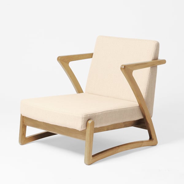 リアルスタイルオリジナルの国産チェアです。あぐらや正座ができず、座椅子に座る事もできない。そうした人たちがふえているにもかかわらず、世間にはそれに変わる「良い低座椅子」がないのでは?そんな素朴な問いからスタートしたリアルスタイルの低座椅子づくり。畳の上にも置けて、座ってみると落ち着く高さ、小ぶりながらも座面は広く感じられ、低い座面からの立ち上がりも楽であること。そこに、一筆書きのような手すりの造形美など、リアルスタイルならではの上質な素材へのこだわりとディテールの美しさをデザインしました。高級旅館や料亭でのご利用も想定し、背裏側の手掛けやフルカバーリング仕様など、メンテナンスがしやすい機能性も完備。日本の住まいに欠かせない和室の使い方が広がる、これからの和室の必須アイテムが誕生しました。木部はすべて丸く丁寧に角がソギ落とされているため、人当たりに優しく、手触りもしなやか。長期に渡ってご愛用いただける、村澤一晃デザインの考えつくされた椅子です。