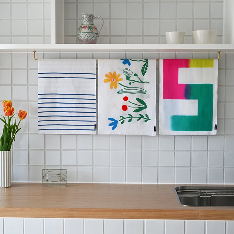 春を彩り、想いを結ぶ3つの新作てぬぐい。今作は、春の清々しさと生命力溢れる、彩り豊かなコレクションです。味わいのあるネイビーブルーの縞「KIITOS(ありがとう)」、軒先の花が咲く春の風景を描いた「花だん」、鮮やかな色が混ざり合う「結び」。