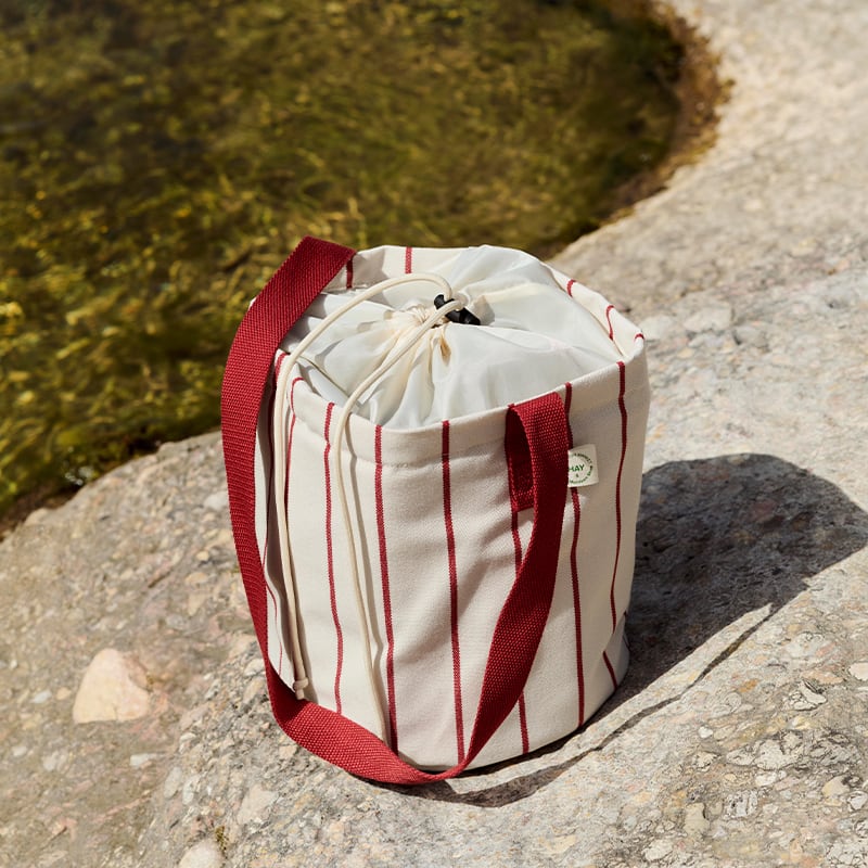 ピクニックやハイキング、ビーチなど、アクティブなシーンでの水分補給をサポートします。素材には環境に優しいリサイクルポリエステルを使用。開閉がスムーズな巾着仕様で、持ち運びに便利なハンドルも装備しています。機能的でありながら、シリーズ共通の洗練されたデザインが魅力です。