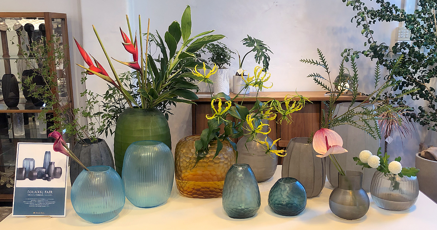すべて職人によるハンドメイドで製造されています。ヨーロッパなどのホテルやショールームにもGUAXSのフラワーベースが数多くディスプレイされるなど、世界中の人々に支持されています。また、ブーケはもちろんシンプルな枝ものや一輪の花を、美しく見せてくれるだけでなく花を活けずにオブジェとして置いてあるだけでも存在感のあるフラワーベースです。
