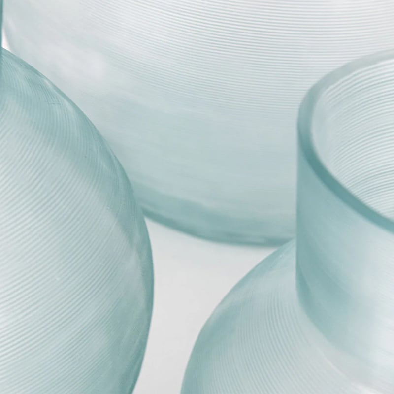 大胆な全面カッティングが特徴で、グレイがかった個性的なガラスカラーは、光を当てると柔らかく輝きます。マットな質感や、特徴的な美しいフォルム、そして彫刻のようなカッティングはまるで芸術品のようであり、そのひとつひとつが熟練した職人によるハンドメイドによるもの。存在感がありながら、活ける花の個性が光る花器シリーズです。