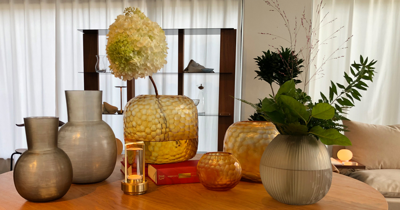 すべて職人によるハンドメイドで製造されています。ヨーロッパなどのホテルやショールームにもGUAXSのフラワーベースが数多くディスプレイされるなど、世界中の人々に支持されています。また、ブーケはもちろんシンプルな枝ものや一輪の花を、美しく見せてくれるだけでなく花を活けずにオブジェとして置いてあるだけでも存在感のあるフラワーベースです。