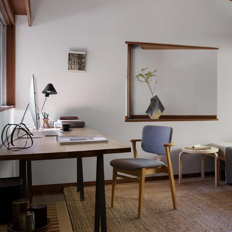 80年を経た現代も、「ドムス チェア」の親しみやすさ、温かさ、そして柔軟な適応力は、世界中のあらゆる環境に取り入れられています。ヘルシンキのオフィス、パリのレストラン、日本のアパートメント——どこであっても自然に溶け込みます。その魅力は、実用性と個性がほどよく調和していること。あらゆる環境に馴染みながらも、どこかほっとする家のような親しみを静かにたたえている椅子なのです。
