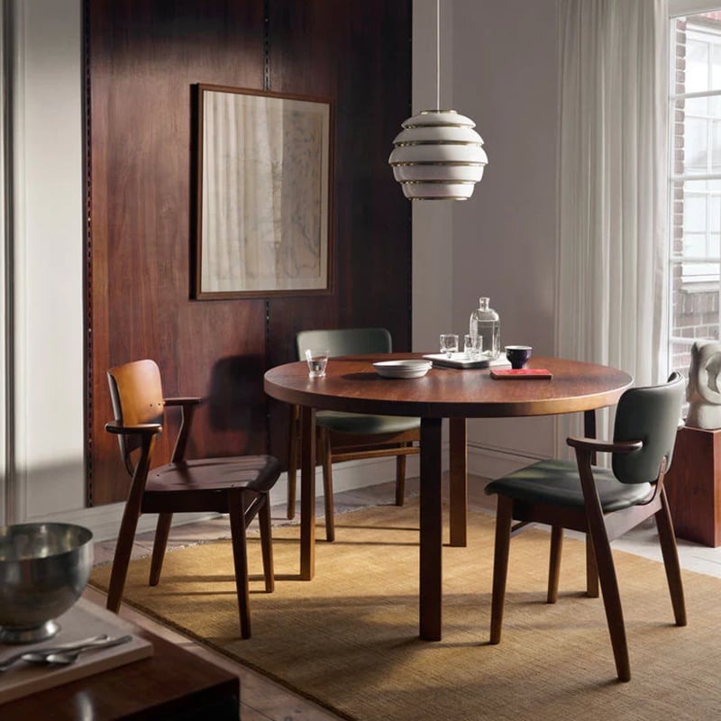 80年を経た現代も、「ドムス チェア」の親しみやすさ、温かさ、そして柔軟な適応力は、世界中のあらゆる環境に取り入れられています。ヘルシンキのオフィス、パリのレストラン、日本のアパートメント——どこであっても自然に溶け込みます。その魅力は、実用性と個性がほどよく調和していること。あらゆる環境に馴染みながらも、どこかほっとする家のような親しみを静かにたたえている椅子なのです。