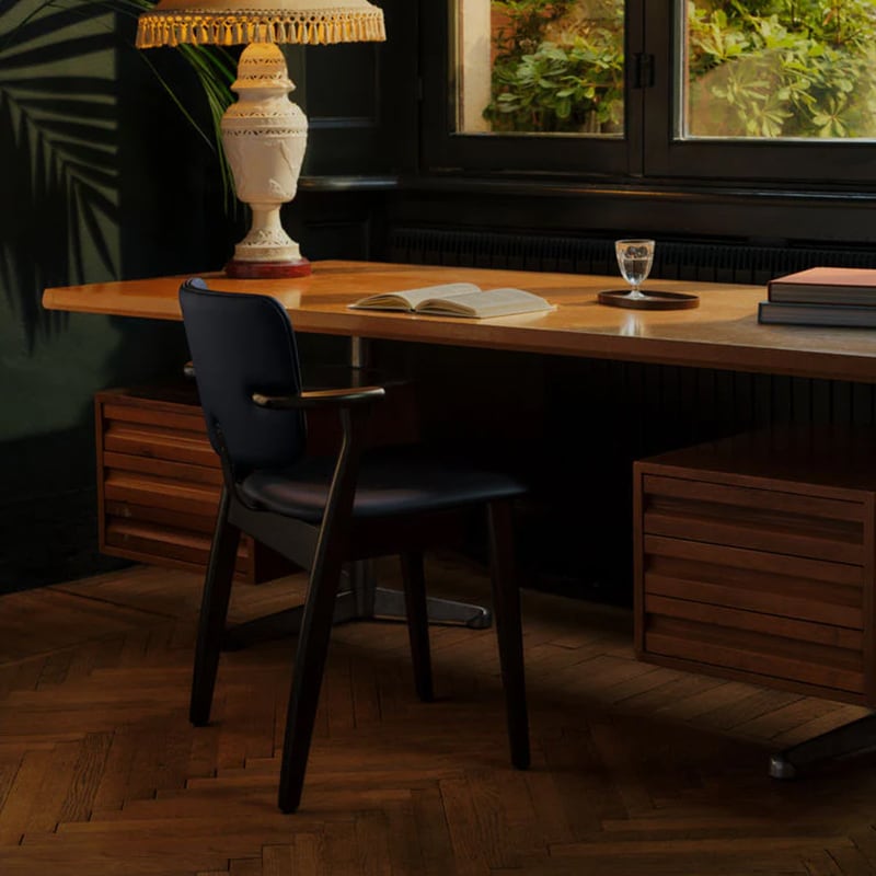 80年を経た現代も、「ドムス チェア」の親しみやすさ、温かさ、そして柔軟な適応力は、世界中のあらゆる環境に取り入れられています。ヘルシンキのオフィス、パリのレストラン、日本のアパートメント——どこであっても自然に溶け込みます。その魅力は、実用性と個性がほどよく調和していること。あらゆる環境に馴染みながらも、どこかほっとする家のような親しみを静かにたたえている椅子なのです。