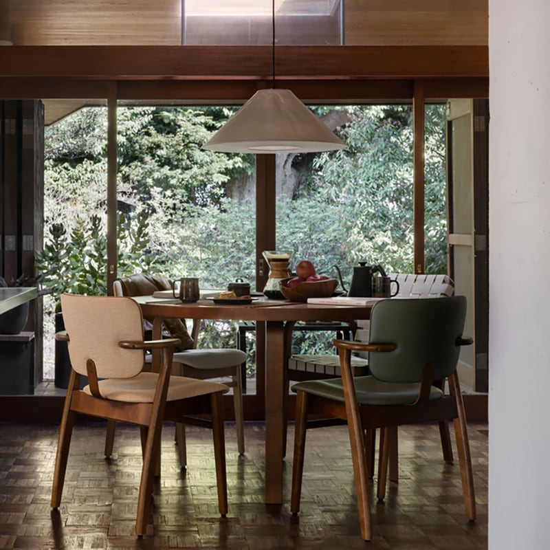 80年を経た現代も、「ドムス チェア」の親しみやすさ、温かさ、そして柔軟な適応力は、世界中のあらゆる環境に取り入れられています。ヘルシンキのオフィス、パリのレストラン、日本のアパートメント——どこであっても自然に溶け込みます。その魅力は、実用性と個性がほどよく調和していること。あらゆる環境に馴染みながらも、どこかほっとする家のような親しみを静かにたたえている椅子なのです。