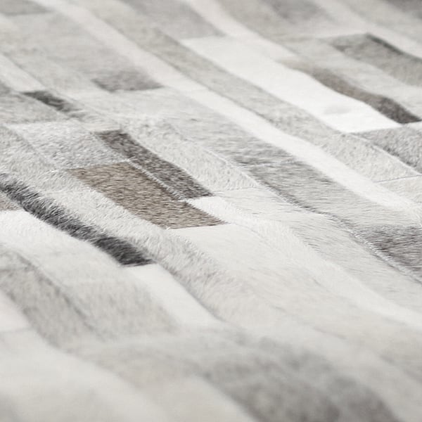 天然の牛革を使用していおり、キメが細かく滑らかな肌触りです。フローリングはもちろん、石やタイル張りの床とも相性が良く、どんな空間にもマッチします。パッチワークのようにカットした牛革を縫い合わせているので、重たい印象にならず使いやすいラグです。お部屋を明るい雰囲気にしたいのならグレー、落ち着いた印象にしたいのならチョコを選んでみてはいかがでしょうか。