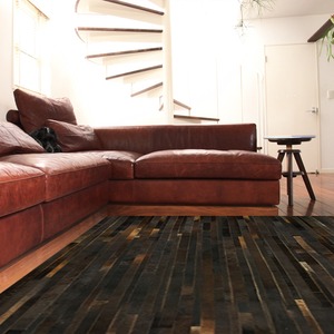 天然の牛革を使用していおり、キメが細かく滑らかな肌触りです。フローリングはもちろん、石やタイル張りの床とも相性が良く、どんな空間にもマッチします。パッチワークのようにカットした牛革を縫い合わせているので、重たい印象にならず使いやすいラグです。お部屋を明るい雰囲気にしたいのならグレー、落ち着いた印象にしたいのならチョコを選んでみてはいかがでしょうか。