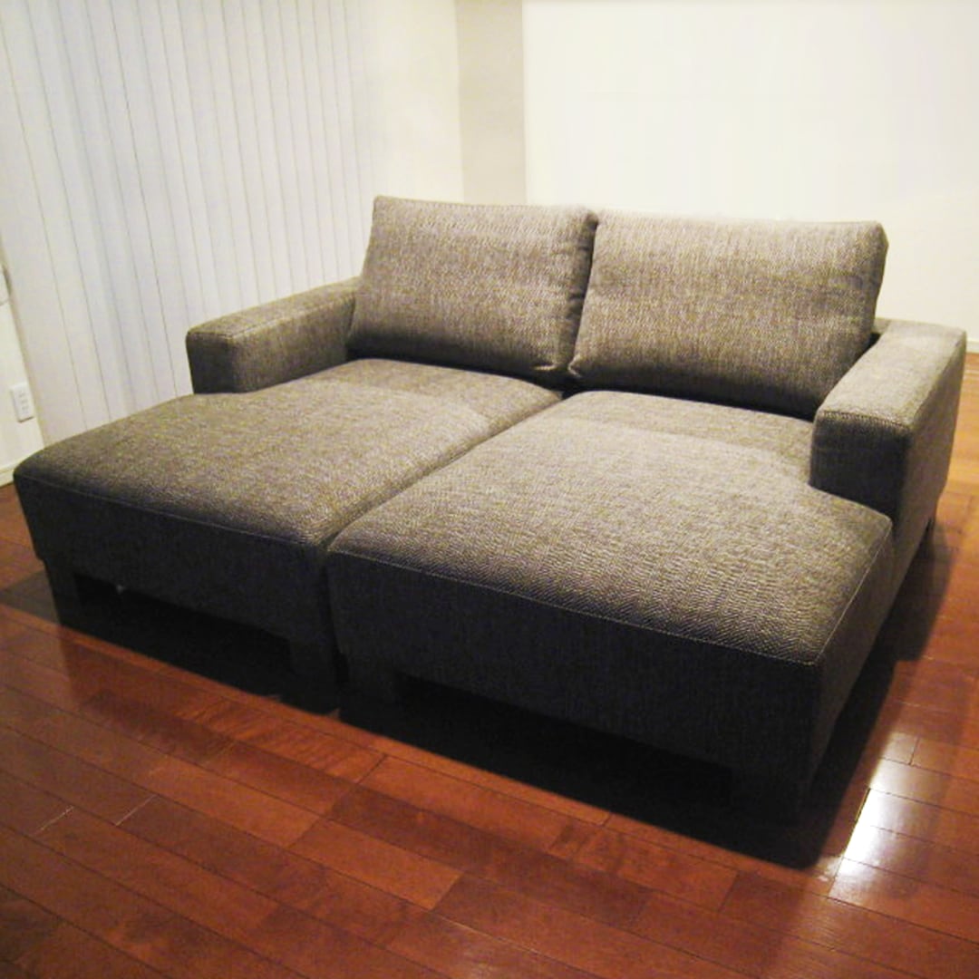 リアルスタイルオリジナルの国産ファブリックソファです。奥行きの深い座面でゆったりとくつろげるカウチタイプのソファ。2台組合せてベッドのようなくつろぎをリビングにも。