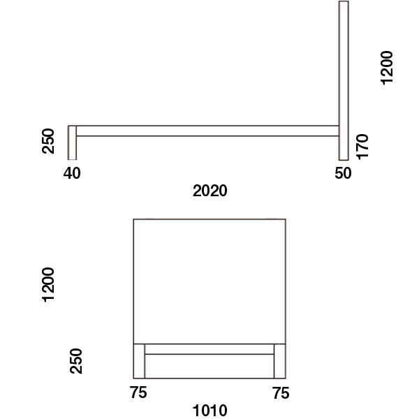 シングル/W1010 × D2020 × H1200(FH250)mm