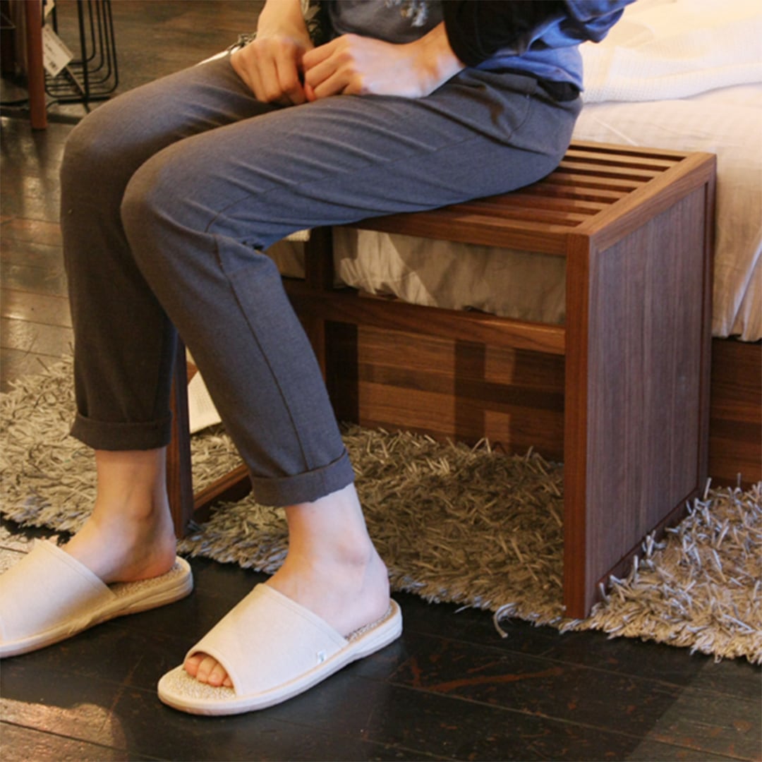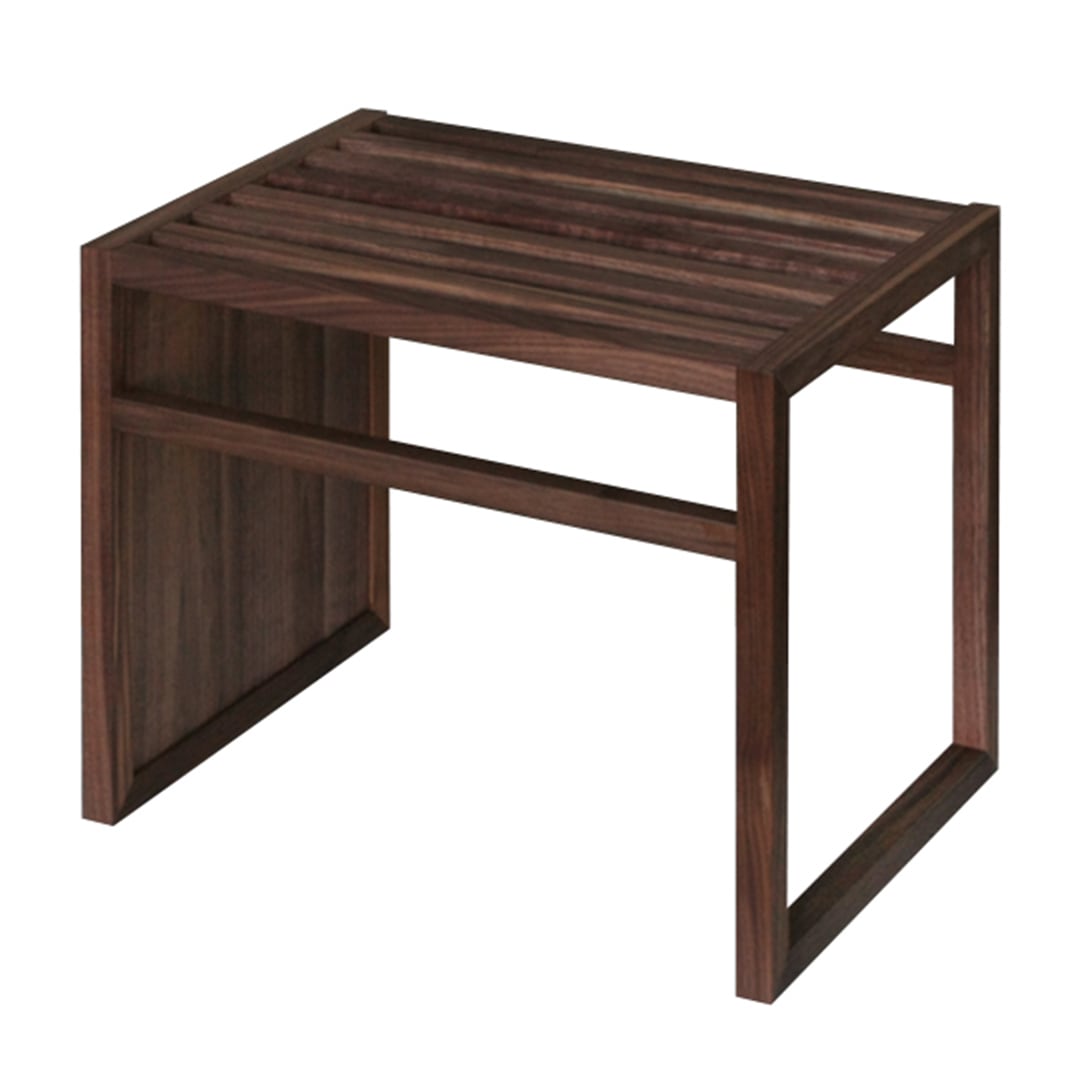 サイドテーブルなのにスツールにもなる2Wayなテーブルです。23cm角の格子が見る角度で表情を変える、シャープなデザイン。無垢なのに重過ぎない印象がコーディネイトしやすく、リビングをはじめ寝室や玄関などにもぴったりです。温かみのあるウォールナット無垢にすっきりとした格子。そして機能的なデザイン。サイドテーブルの脚がソファやベッドなどの脚に収まるので置き場所を選びません。さらに格子面を上にすればスツールとしてご使用いただけます。