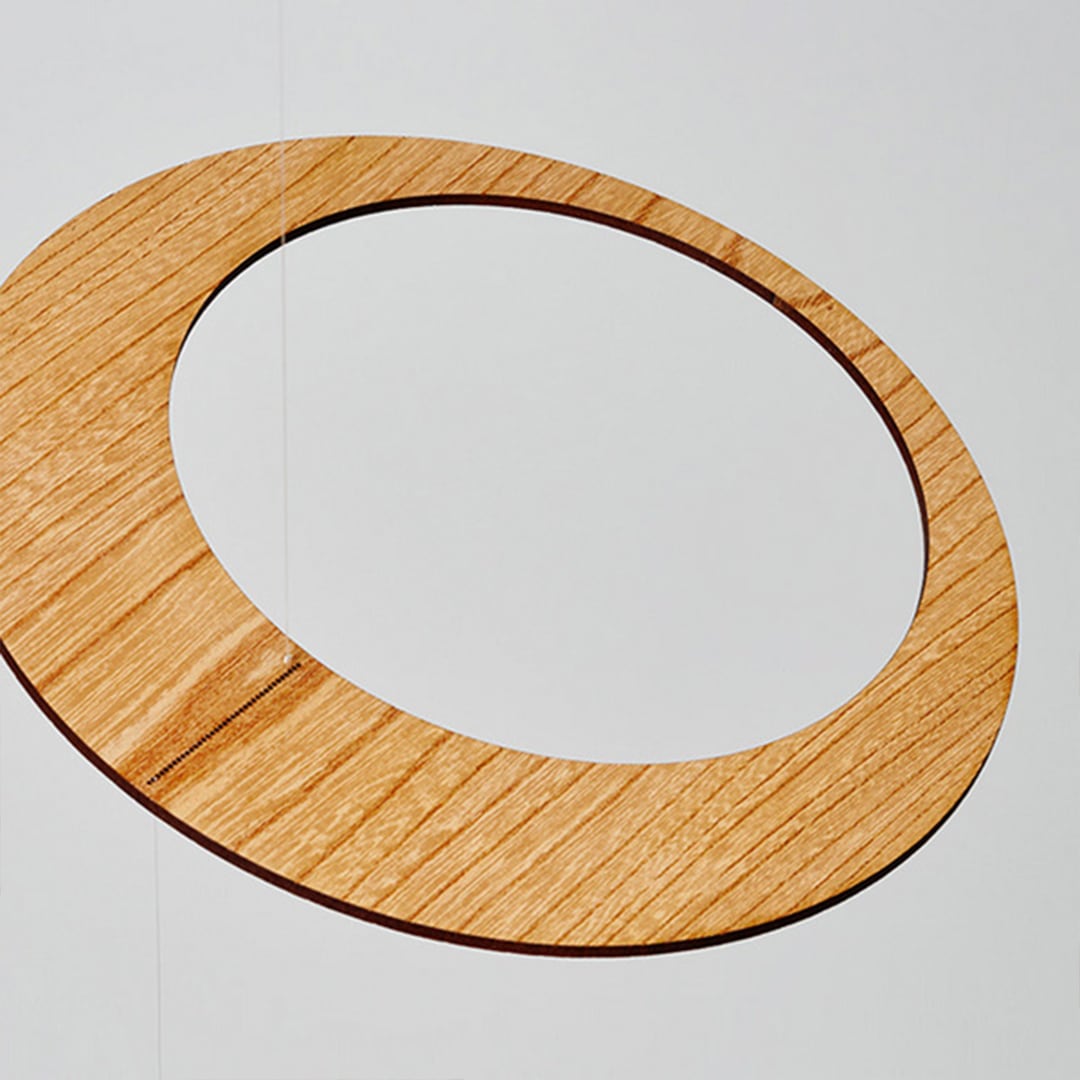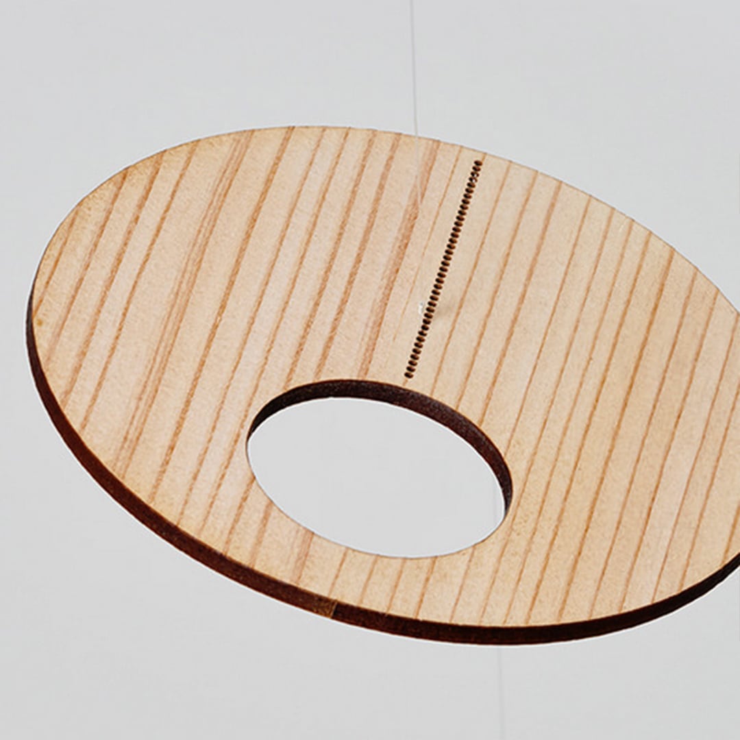 衛星という意味の木のモビール。1枚の板をレーザーでカットしてできています。絶妙なバランスで風をとらえゆらゆらと不思議な動きでゆれるさまはまさに小宇宙。4種類の樹種を用意しておりますので、お気に入りの樹種で小さな小宇宙を体験してください。
