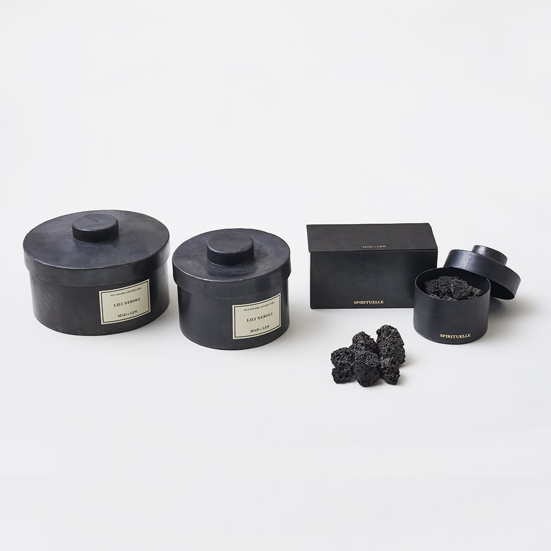 ミニマルアートを感じさせるアイアンの器に、無骨なラバロック(溶岩石)を入れた、ポプリタイプのルームフレグランスです。付属のリチャージオイルを滴らし、お好みに合わせ香りの広がりや強弱をお楽しみください。蓋の開け閉めでも調整できます。