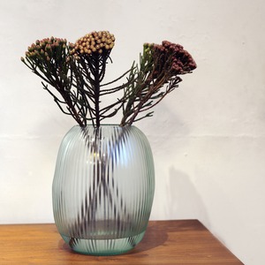 大胆な全面カッティングが特徴で、グレイがかった個性的なガラスカラーは、光を当てると柔らかく輝きます。マットな質感や、特徴的な美しいフォルム、そして彫刻のようなカッティングはまるで芸術品のようであり、そのひとつひとつが熟練した職人によるハンドメイドによるもの。存在感がありながら、活ける花の個性が光る花器シリーズです。