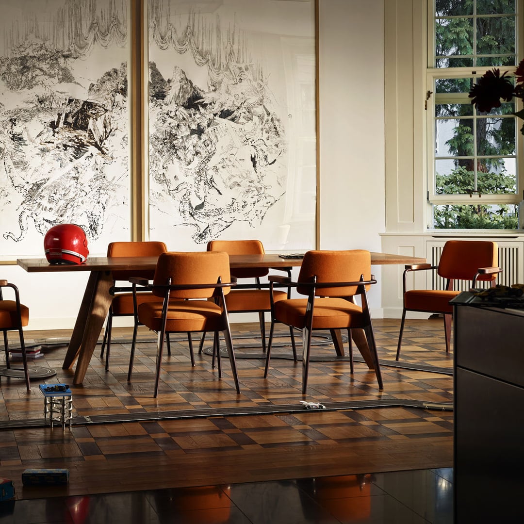 プルーヴェの洗練されたデザインが引き立つ、無垢材の重圧感