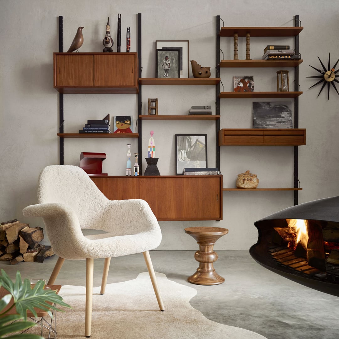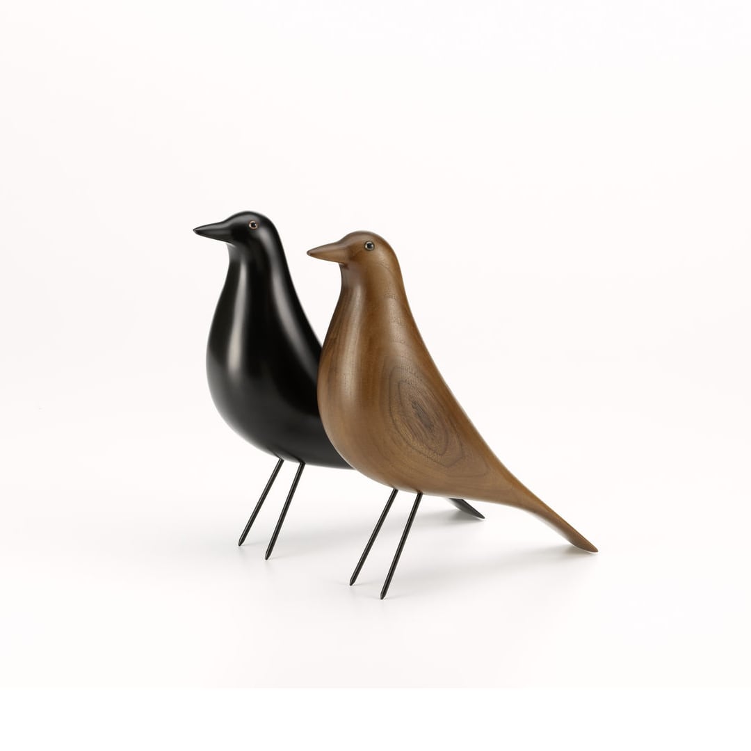 チャールズ&レイ・イームズ夫妻は、旅から持ち帰った数多くのオブジェや、インテリアアクセサリーで、彼らの自邸であるイームズハウスをコラージュするように飾っていました。黒い木製の「イームズ ハウス バード」は、50年以上ものあいだ、彼らの居間に置かれていました。2018年、木目の美しいウォールナットか?発売されました。