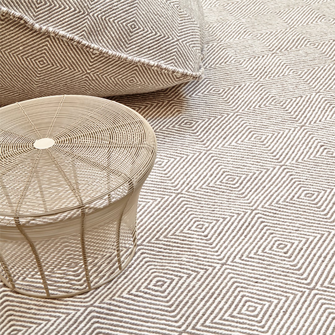 100%ウール素材でできた肌触りのやわらかなラグです。ダイヤモンドパターンの柄がウールのやわらかさをカジュアルにし過ぎません!GANの中でもシンプルなカラーとデザインで、丸みのある家具、直線的な家具、どんなテイストでも合わせやすいラグです!薄手なので掃除機もかけやすくゴミも入りにくい、普段使いがしやすいラグです。