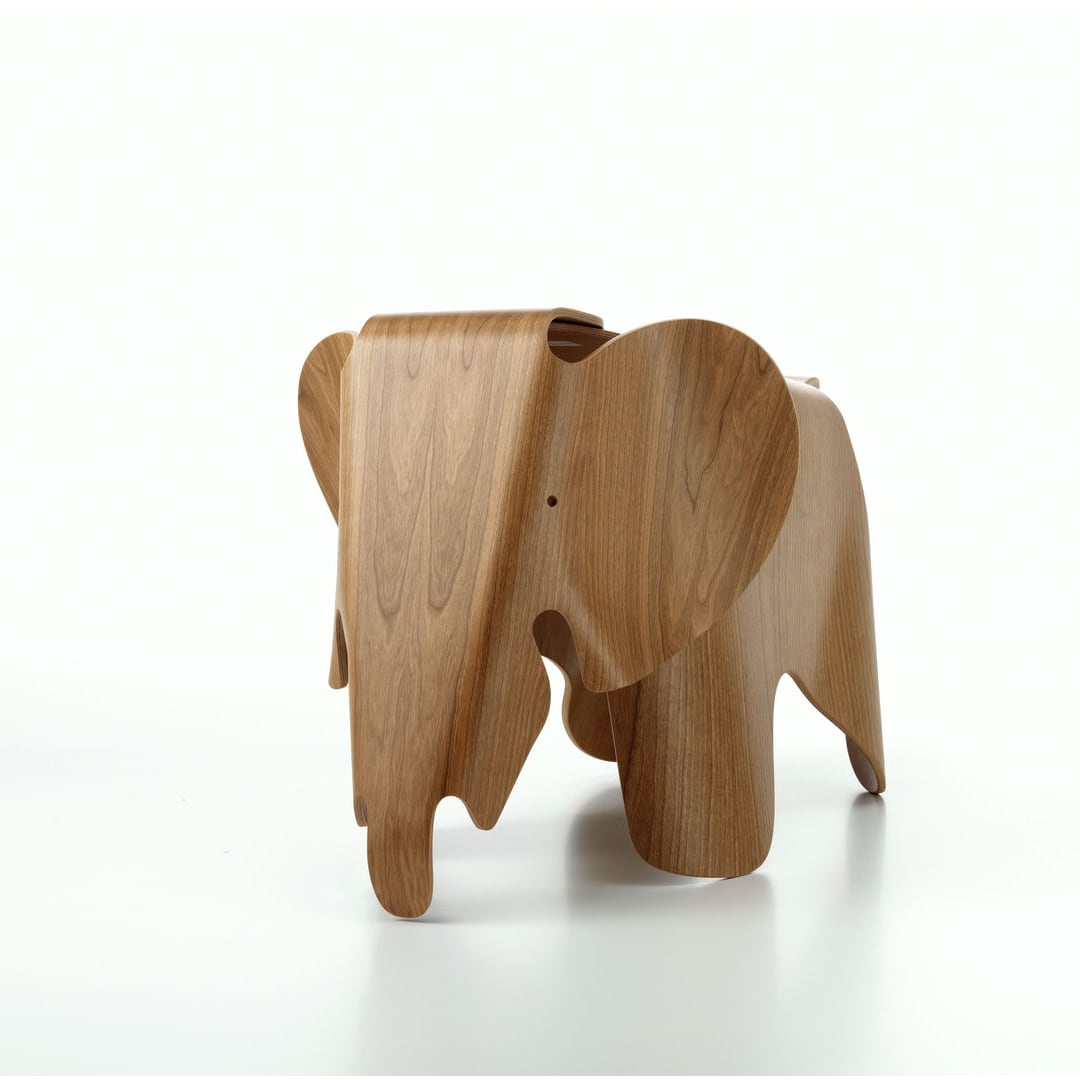 チャールズ&レイ・イームズは、1945年にプライウッドを成形する技術を用いた象の形をしたおもちゃをデザインしました。しかし、当時はまだ技術的に難しく、製品化にはいたりませんでした。その時の試作品のひとつは1946年にMuseum of Modern Artでの展覧会に展示され、今日もイームズファミリーのアーカイヴに残っています。2007年の限定生産を経て、ついにアメリカンチェリーの合板を使った「イームズ エレファント プライウッド」の量産がスタート、ラインナップに加わりました。このシリーズは、プラスチック製の「イームズ エレファント」と、小ぶりな「イームズ エレファント スモール」の3種類です。