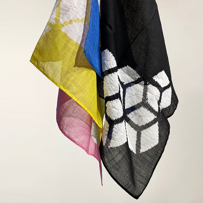 400年以上続く伝統工芸品「有松絞」技術を用いた、リアルスタイルデザイン監修のデザインハンカチ。リアルスタイル20周年記念にsuzusanとコラボレーション。シャリっとした光を通す美しい透け感がある上質な生地です。同じ色・柄でも1点1点の色合いや染具合、絞りの大きさなどが異なり、1点ものとなっております。限定パッケージ入り。